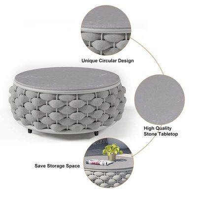 Kenmerken | Type:Sofa met touw Materiaal: touw Ruimte: aluminium Eenvoudige bank Grootte: W85 x D85 x H70cm Doppelbank Grootte: W165 x D85 x H70cm Ronde koffietafel Grootte:W70 x D70 x H35cm |
