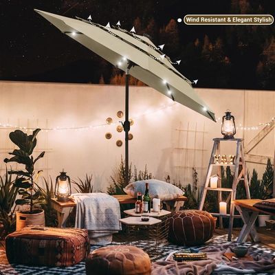 Custom Logo Outdoor Cafe Garden Beach Patio Zonneparaplu met 3 Tiers en LED-lichten