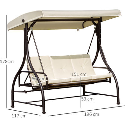 Kenmerken | *Plaatsen voor maximaal drie personen tegelijk *Verstelbaar luifel om te beschermen tegen lichte regen * Gepoederd kussen voor comfort *Metalen frame voor duurzaamheid * Geschikt voor alle tuin- en buitenwoningen |